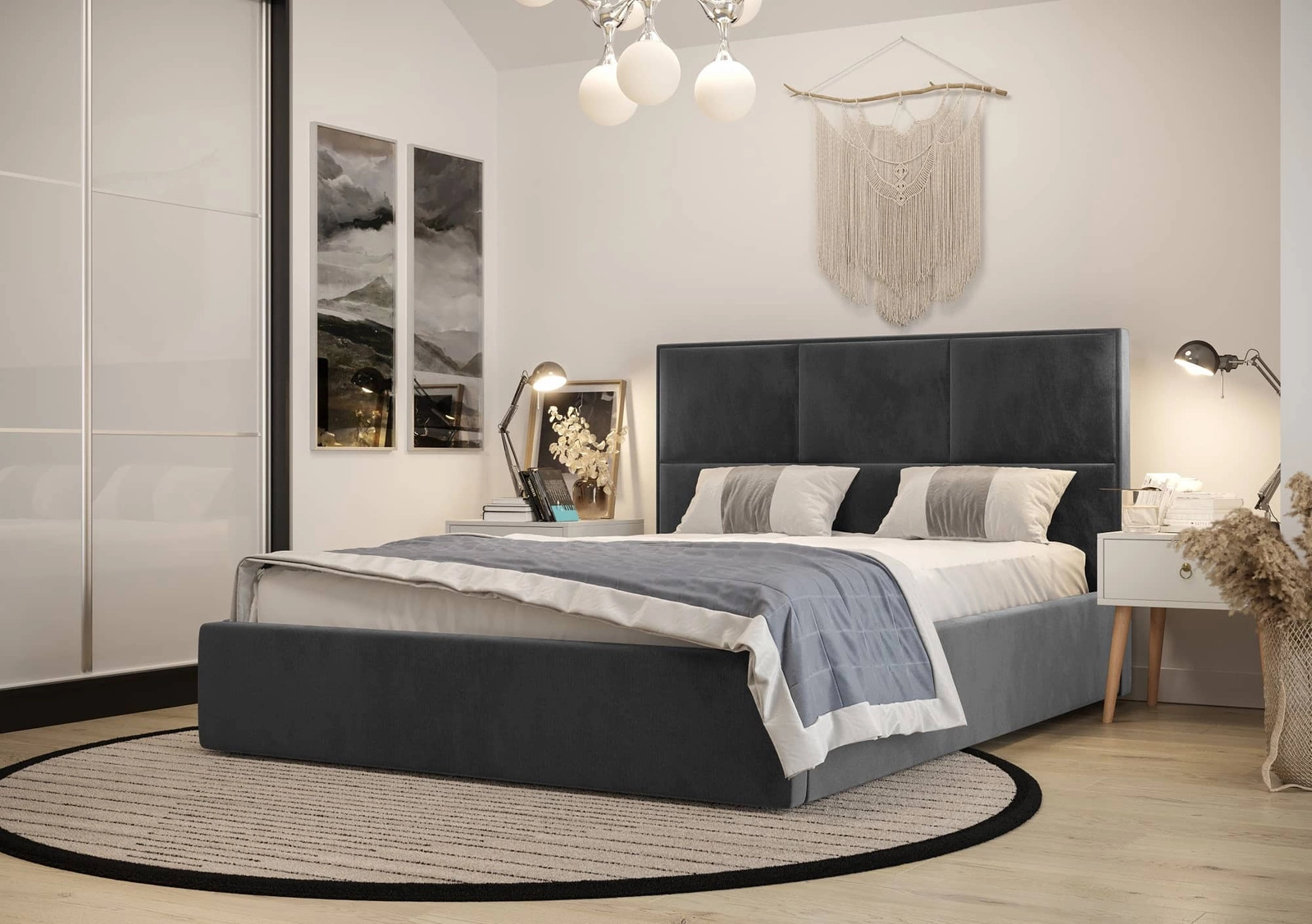 Das Polsterbett Hestia 160x200 in Grau ist eine ideale Lösung für modern, skandinavisch und klassisch eingerichtete Schlafzimmer.