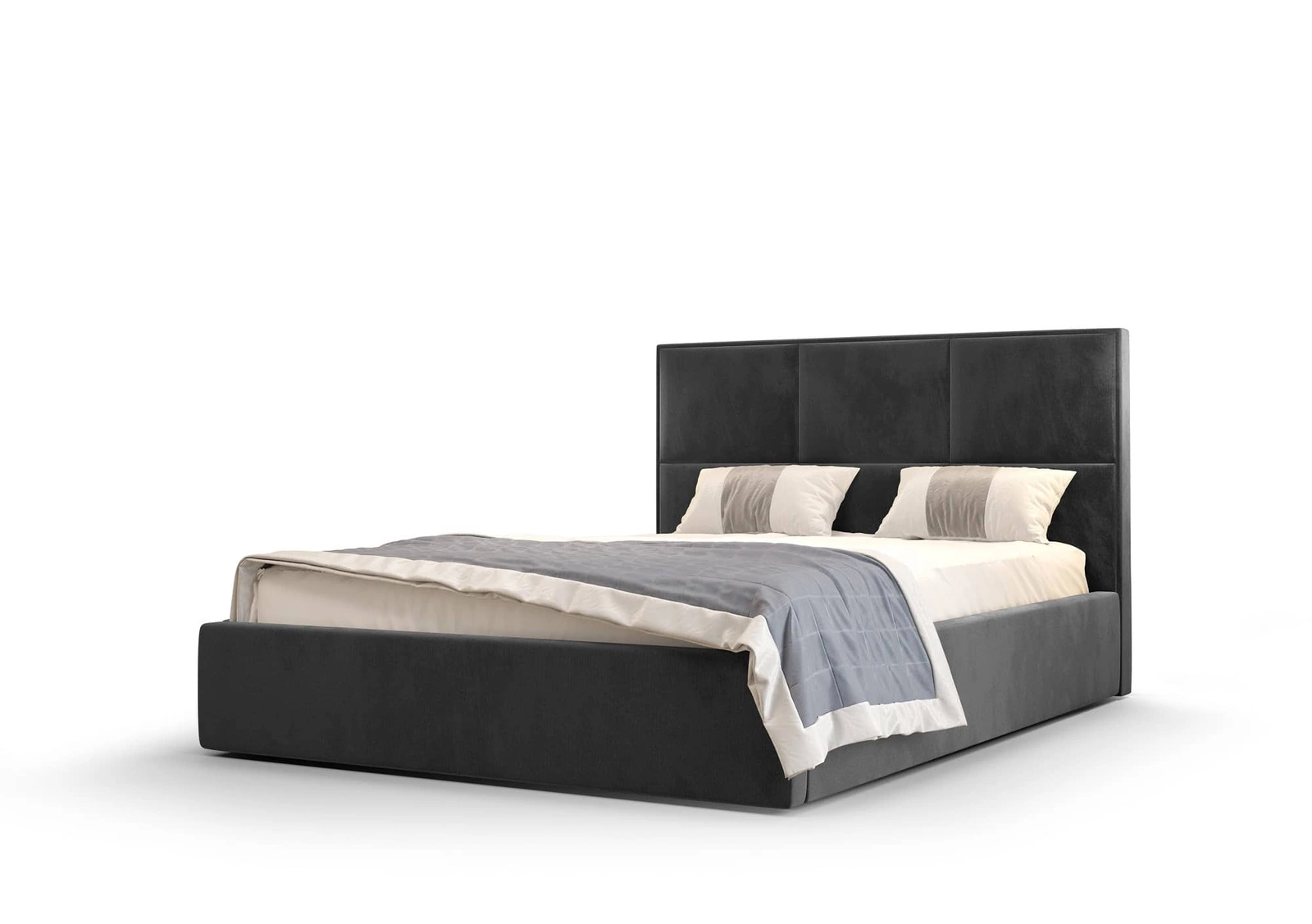 Bett aus Stoff typ velvet Monolith 92 garantiert ein Höchstmaß an Komfort und Funktionalität für die tägliche Entspannung im Schlafzimmer. Der Stoff hat eine Beschichtung aus hydrophob, was eine begrenzte Flüssigkeitsaufnahme gewährleistet. Die interessante Struktur des Gewebes verleiht einen einzigartigen Charakter. Dank der Eigenschaften des verwendeten Stoffes behält das Bett lange Zeit sein ursprüngliches Aussehen. Das Design des Bettes bietet große Stabilität und Komfort bei der Benutzung. Der Bettrahmen ist aus Holz und Möbelplatte gefertigt. Bequeme und praktische Kopfstütze ist mit sechs rechteckigen Platten versehen.