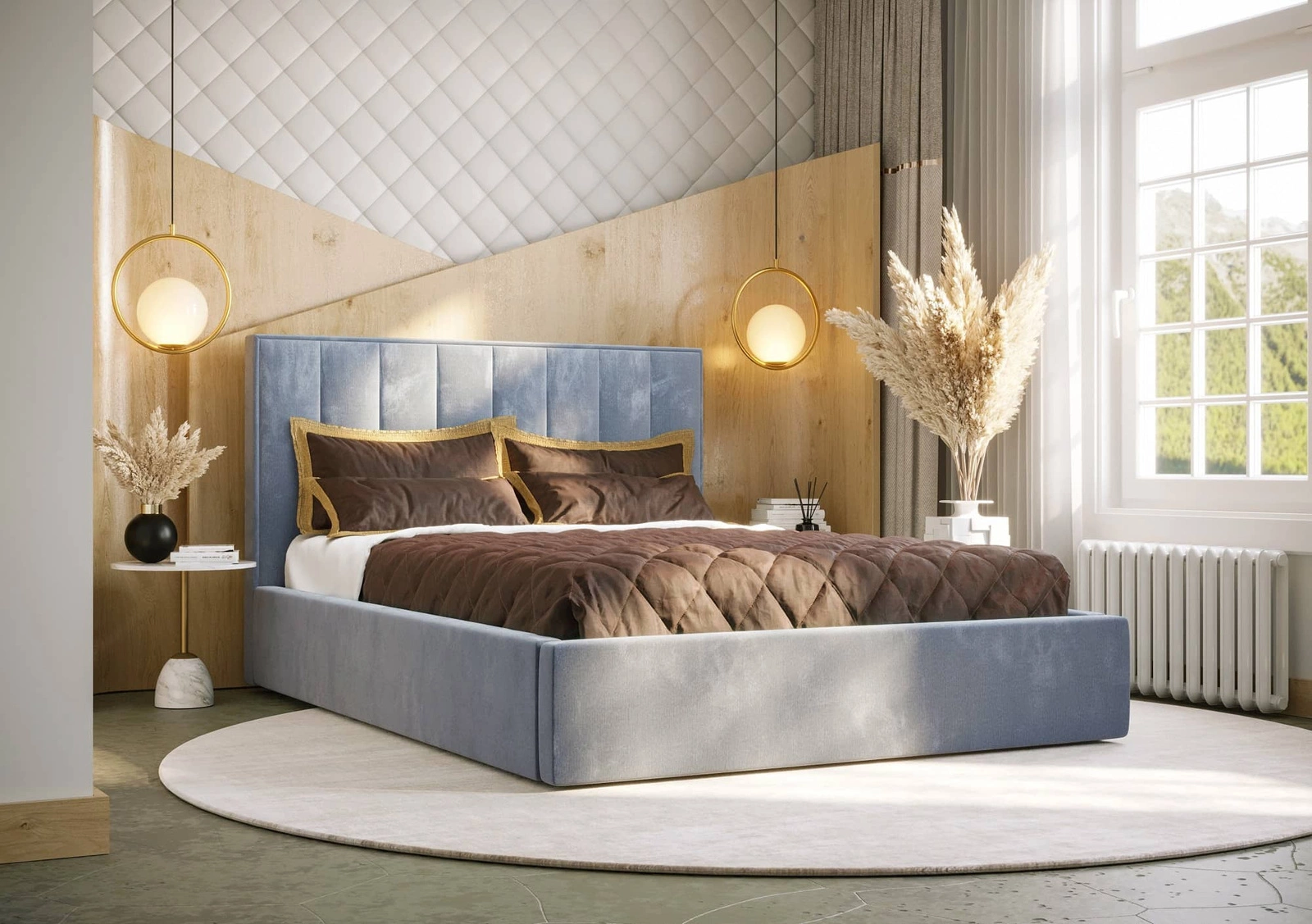 Das Polsterbett Rinus 160x200 in Hellblau ist eine ideale Lösung für modern, skandinavisch und klassisch eingerichtete Schlafzimmer.
