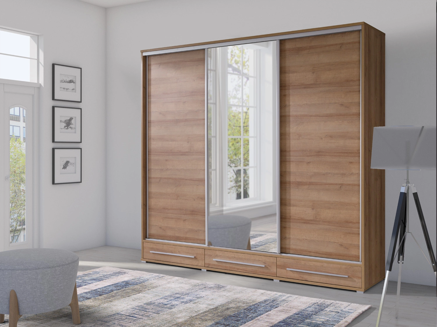 Schiebeschrank Hajfa 255 cm Eiche bordeaux modernes Design Kleiderschrank mit Spiegel Korpus aus 22mm starker Platte