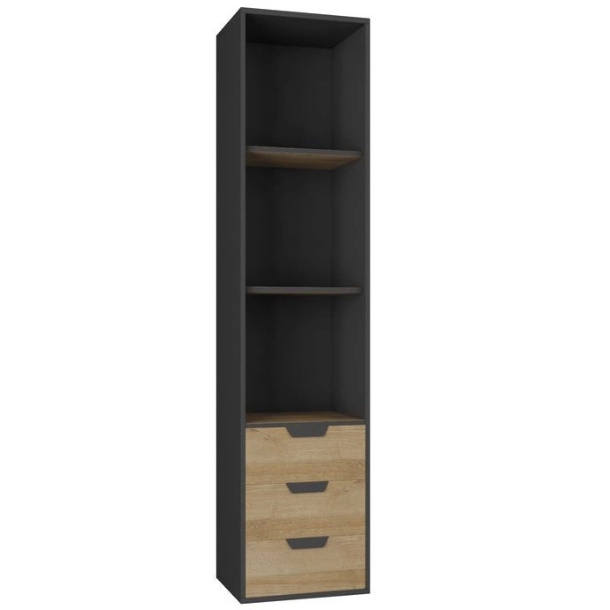 Bücherregal mit Schubladen Nano 45 cm graphit / Eiche riviera Kante mit speziellen Furnier fertig stilvolle und funktionale Ergänzung für das Büro und Jugendzimmer