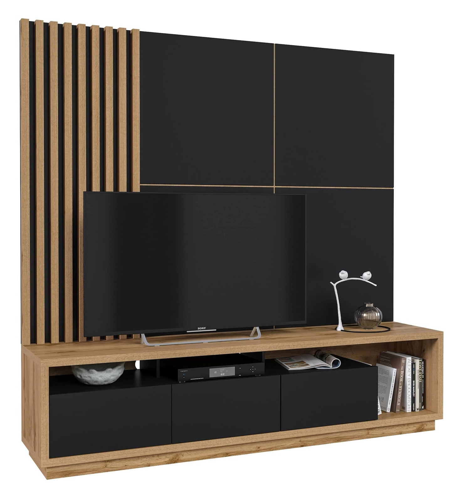 Dekoratives Wandpaneel mit Celine-Lamellen 51 cm Eiche wotan/schwarz modernes Design stilvolle Wohnraumgestaltung