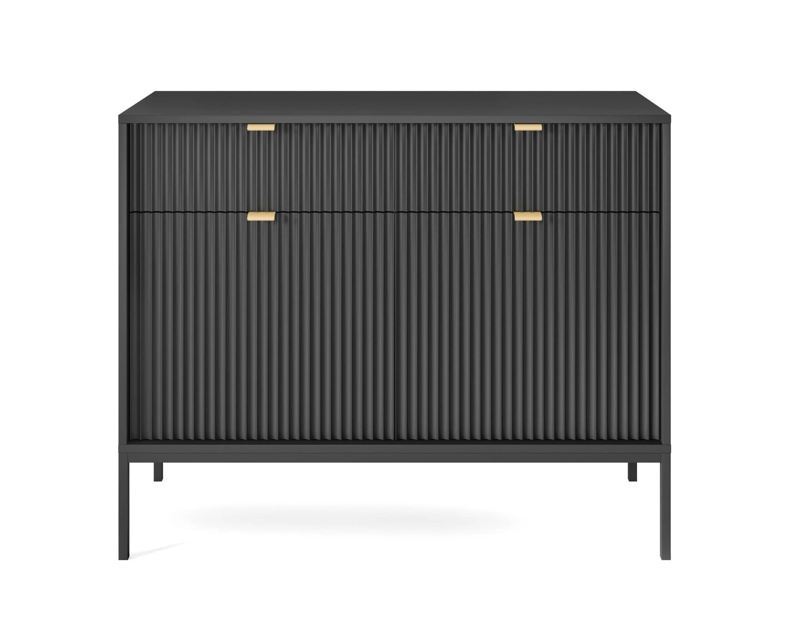 Geriffelt frondos aus MDF 18 mm dick einen besonderen Charme verleihen. Die stilvollen Abschlüsse der Kommodenfronten sind goldfarbene Kantengriffe. Die Struktur der Möbel ist vielfältig schwarze Metallbeine o höhen 20 cm.