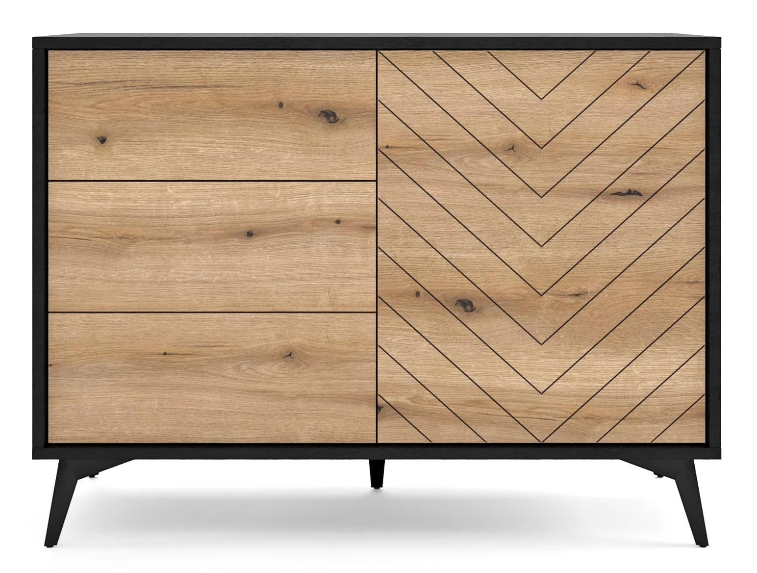 Kommode mit Schubladen Gusto 104 cm Schwarz / Eiche Evoke Funktionales und ideales Möbelstück für moderne klassische und skandinavische Innenräume