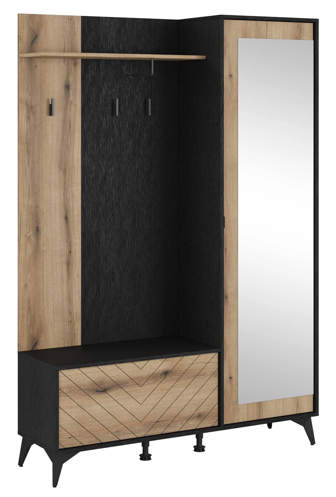 Garderobe Gusto 134 cm Schwarz / Eiche Evoke Funktionales und ideales Möbelstück für moderne klassische und skandinavische Innenräume dekoratives Fichtendekor