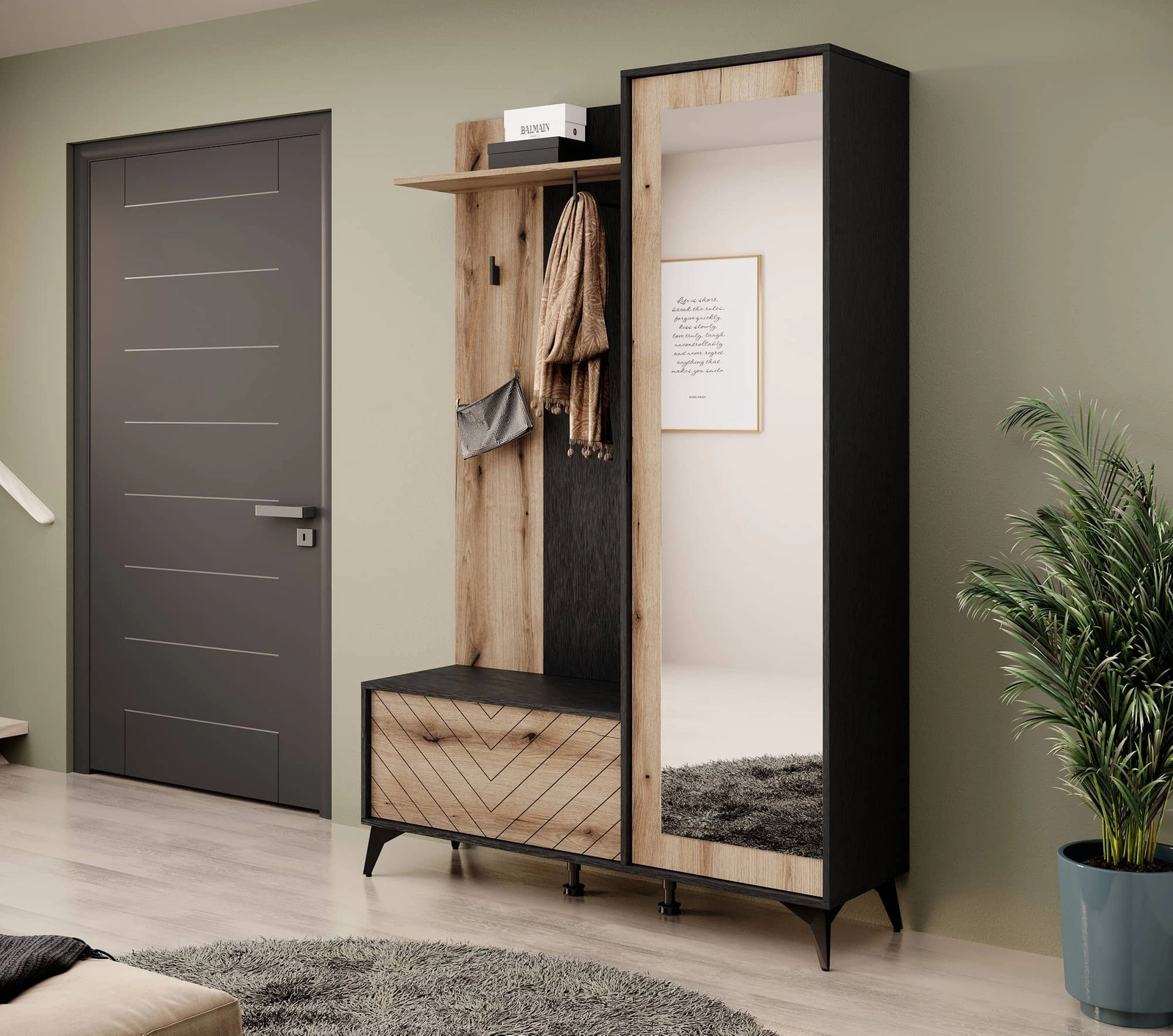 Der Garderobe Gusto in Schwarz / Eiche Evoke ist ein modernes Möbelstück, das zu den aktuellen Einrichtungstrends passt.
