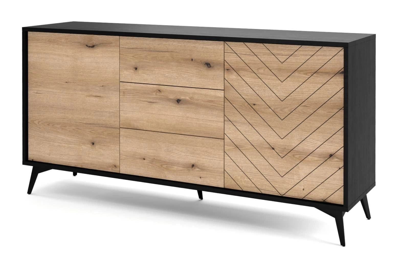 Möbelset Gusto Schwarz / Eiche Evoke Modernes Design funktionale Möbel für das Wohnzimmer oder das Tageszimmer Wandschrank mit dekorativem Fichtendekor