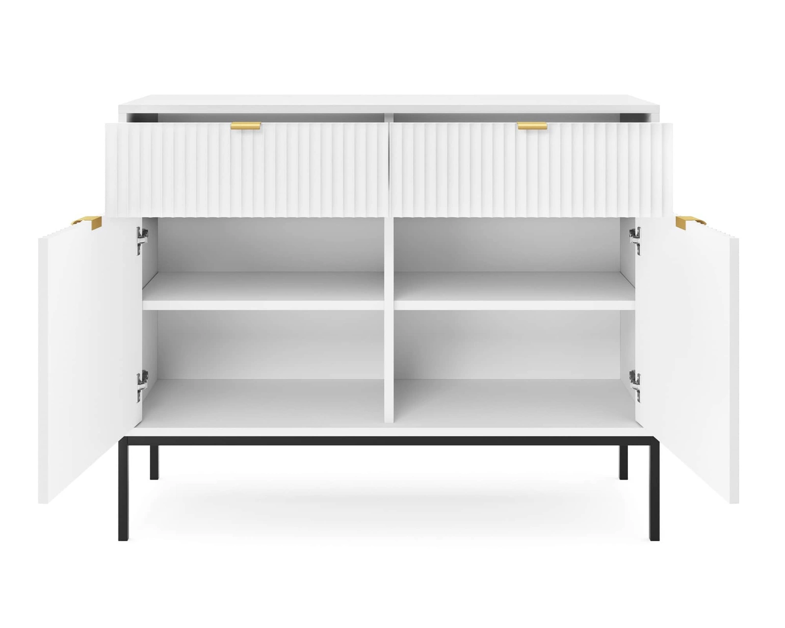 Geriffelt frondos aus MDF 18 mm dick einen besonderen Charme verleihen. Die stilvollen Abschlüsse der Kommodenfronten sind goldfarbene Kantengriffe. Die Struktur der Möbel ist vielfältig schwarze Metallbeine o höhen 20 cm.