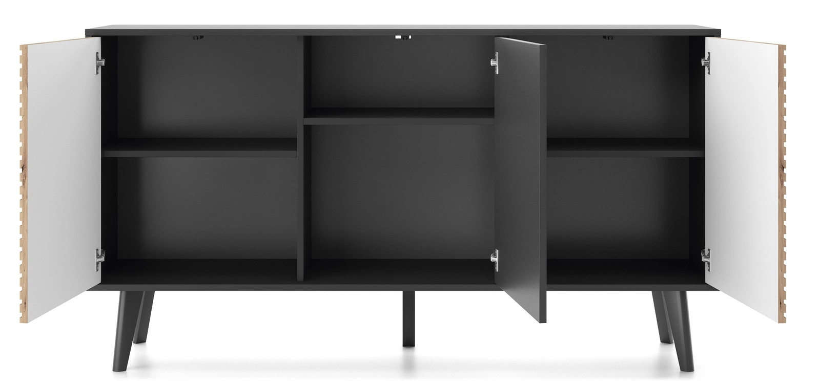 Die 154 cm lange Kommode Saipan in Schwarz / Eiche Artisan ist die perfekte Ergänzung für jedes Wohnzimmer oder Sitzungszimmer.