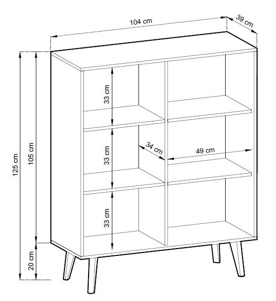 Die geriffelte Front besteht aus 18 mm dicker MDF-Platte. Gehäuse aus hochwertiger laminierter Karton, die resistent gegen äußere Einflüsse wie Druckstellen, Stöße und unglückliche Kratzer ist. Die Struktur der Möbel wurde durch geschmackvolle Holzbeine in holzbeinen in Schwarz 20 cm hoch.