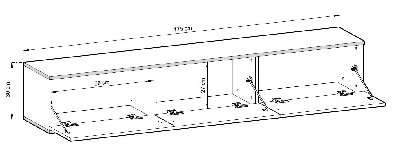 Die Fronten der Schränke sind hergestellt aus 18 mm dicke MDF-Platte. Körper ist aus hochwertigem laminiertem Karton, die sehr widerstandsfähig gegen äußere Einflüsse ist. Um die Schranktüren zu öffnen, müssen die griffloses Push-to-Open-System. Der TV-Schrank garantiert komfortable und problemlose Nutzung und Langlebigkeit des gesamten Möbelstücks für viele Jahre der Nutzung.
