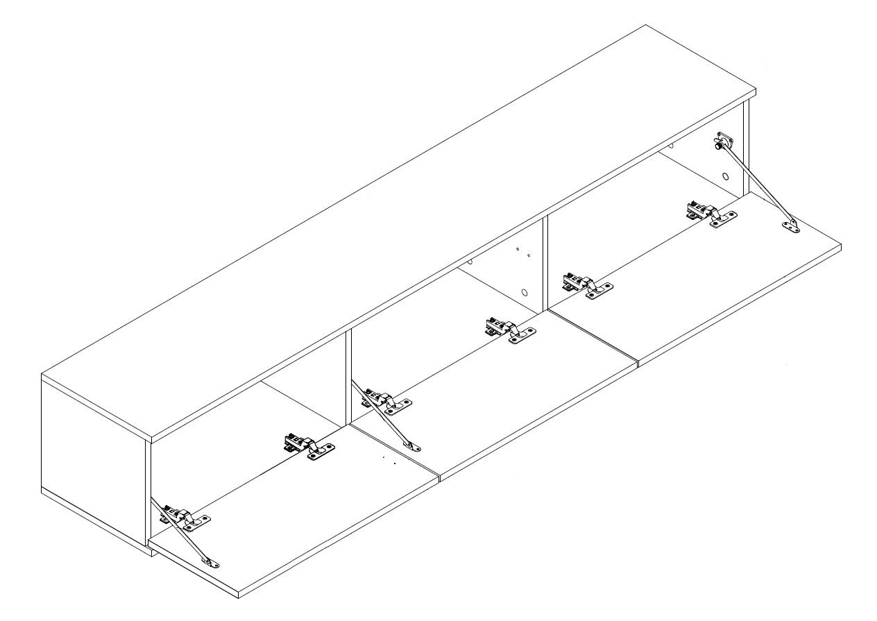 Der TV-Schrank ist mit 3 nach unten öffnenden Türen ausgestattet.