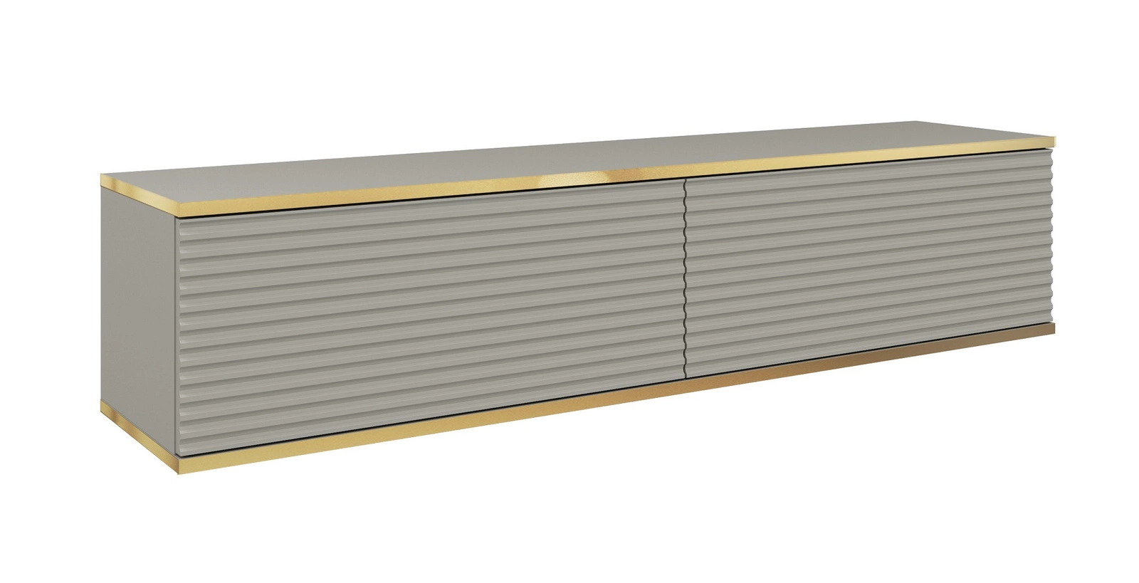 Szafka RTV wisząca Luxury 135 cm w kolorze szarym z ryflowanymi frontami