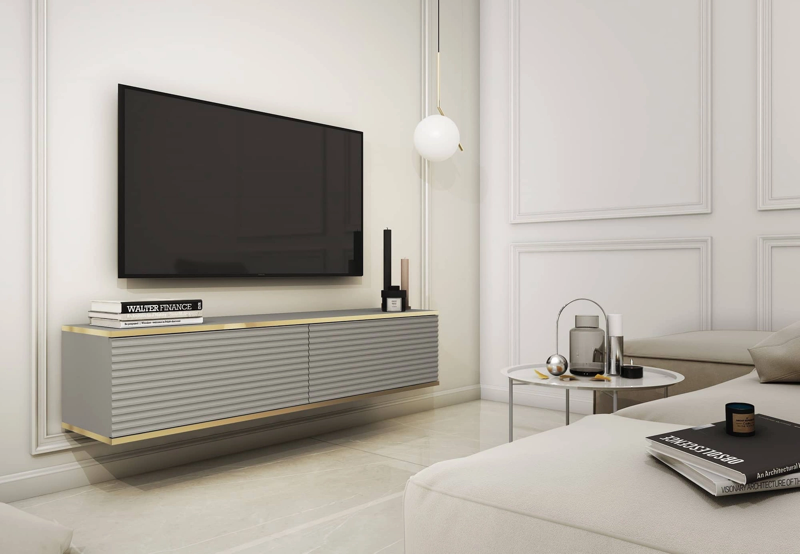 Der Hängender TV-Schrank Luxury 135 cm Grau ist ein modernes Möbelstück, das Ihr Wohnzimmer stilvoll abrundet!