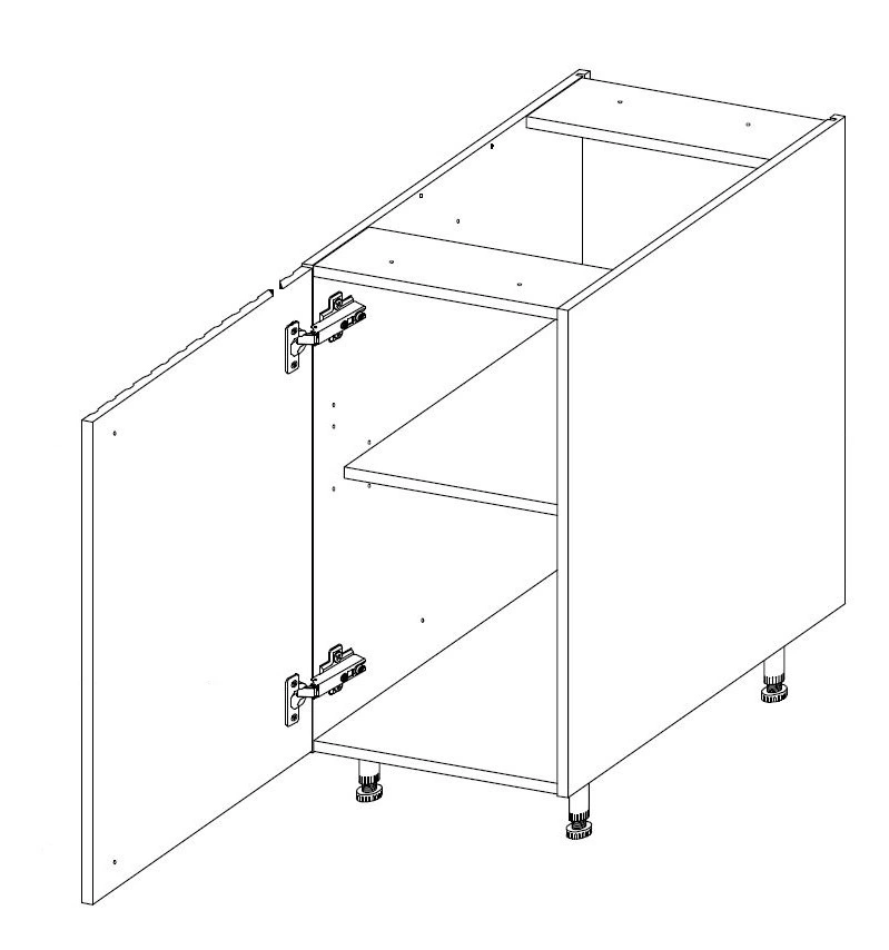 Der Fachboden ist nicht mit dem Schrankkorpus verschraubt, so dass er herausgezogen werden kann, um Platz für hohe Gegenstände zu schaffen. Die Tür ist universell einsetzbar und kann auf der rechts oder auf der links website. Zur Standardausstattung der Küchenschränke gehören scharniere mit Dämpfungssystem. Die Retarder erhöhen den den Komfort i sicherheit verwendung von Möbeln.