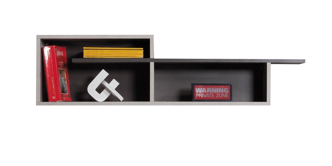 Zur Standardausstattung des Bettes gehören 2 Schubladen und eine Erweiterung in Form eines kleinen Bücherregals. Der Eckkleiderschrank Tablo ist mit einer Kleiderstange, Einlegeböden und offenen Fächern an der Außenseite ausgestattet. Der Schreibtisch ist mit 1 Tür, 2 Schubladen und 3 offenen Fächern ausgestattet. Zusätzliche Bücherregale sind funktionale Möbel, die die Ordnung im Kinder- oder Jugendzimmer erleichtern.