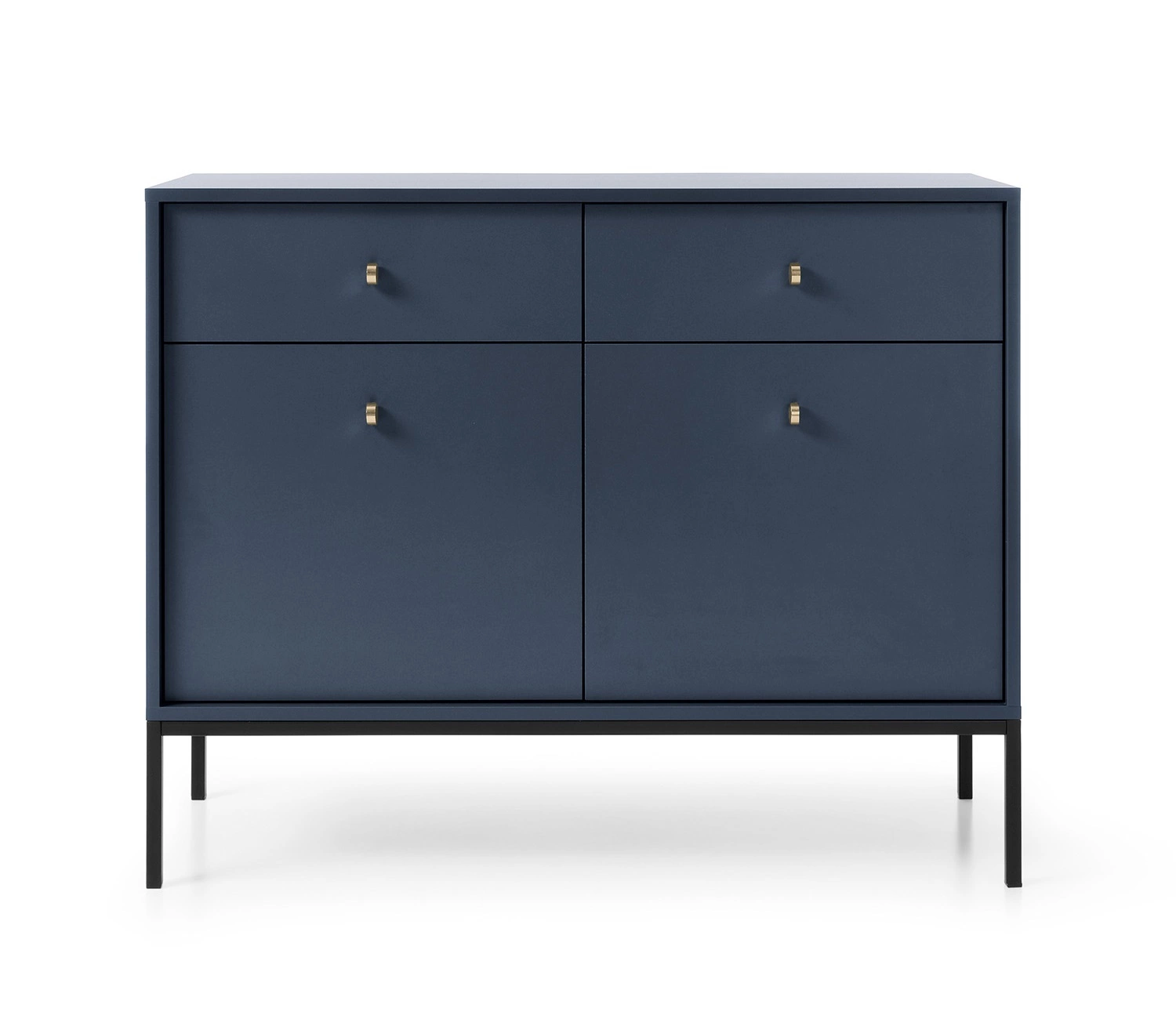Kommode mit Schubladen Mono 104 cm Dunkelblau Minimalistisches Design stilvoller goldener Griff schlichte Form mit metallischen Elementen