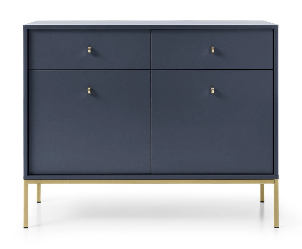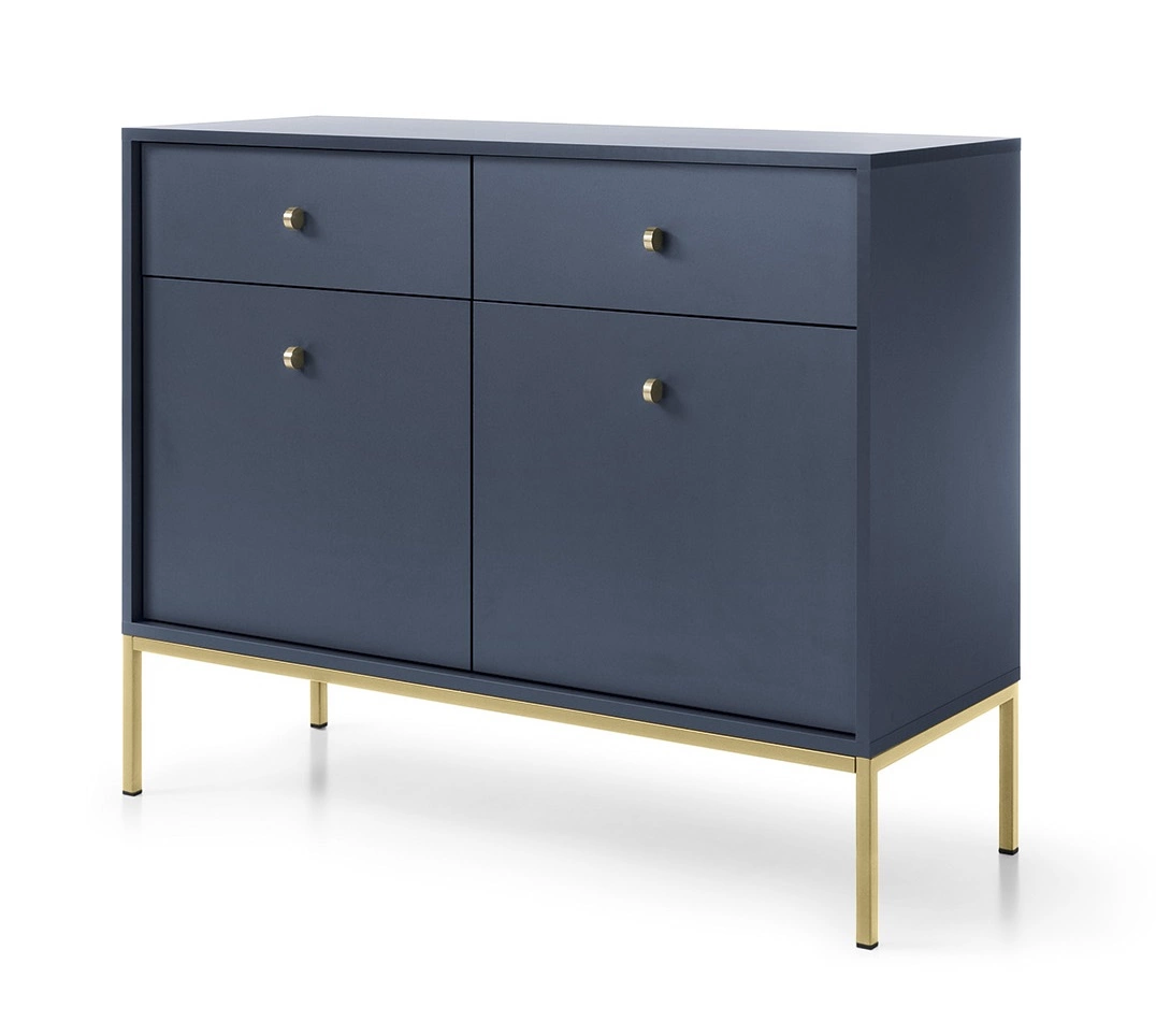 Die Kommode ist gefertigt aus 2 Türen und 2 Schubladen. Die Kommode garantiert komfortable und problemlose Nutzung und Langlebigkeit des gesamten Möbelstücks für viele Jahre der Nutzung. Kräftiges und tiefes Marineblau mischt sich gut mit anderen Farben und macht die Kommode Mono zu einem großartigen wird geprüft kann als Kommode für das Wohnzimmer oder als Kommode für das Schlafzimmer verwendet werden.