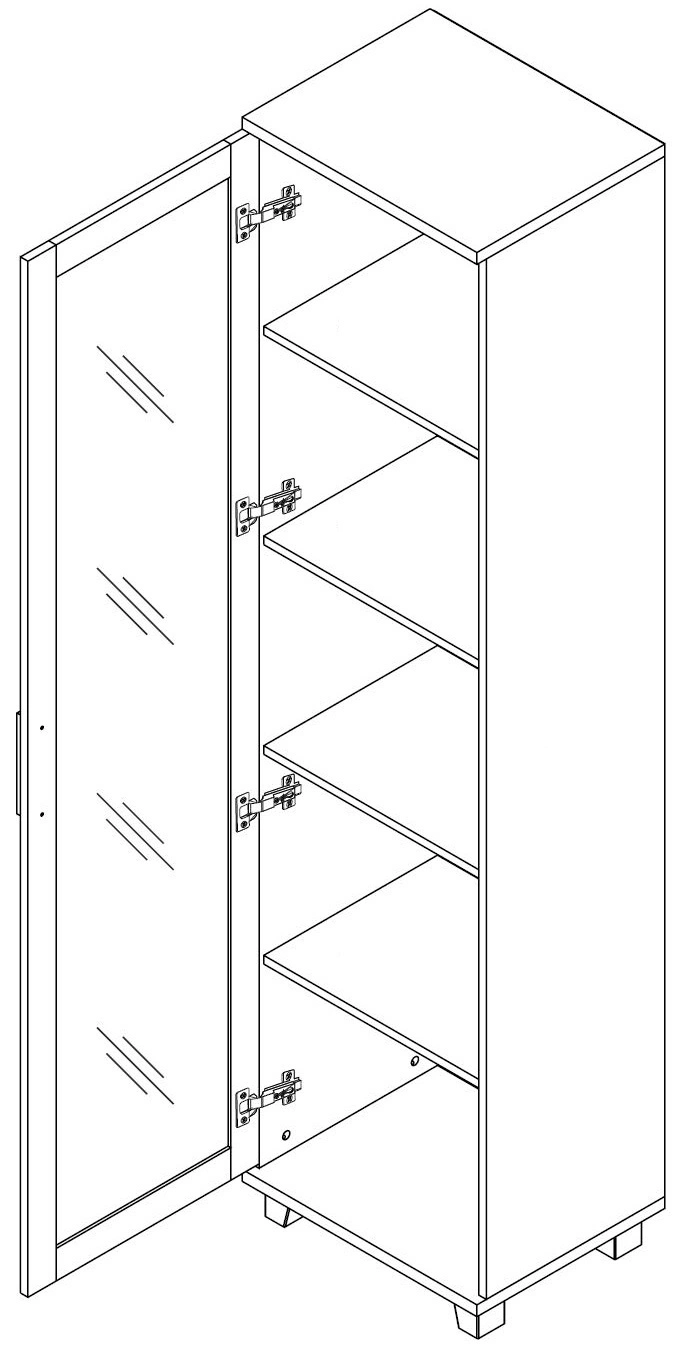 - Modernes Design. Hergestellt aus 16 mm und 22 mm dicker laminierter Platte. Vitrinenkanten mit ABS-Furnier versehen. Elemente aus Einscheiben-Sicherheitsglas in einem milchigen Farbton.