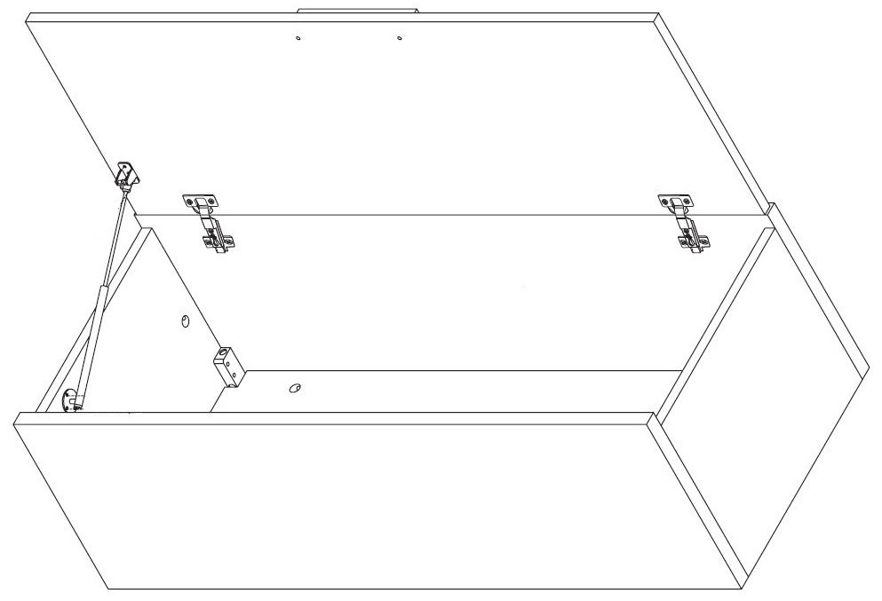Das Regal besteht aus 1 Flügeltür anhebbar auf Gasflaschen. Das Regal ist hergestellt aus hochwertiger laminierter Karton 22 mm und 16 mm dick, die gegen äußere Einflüsse wie Druckstellen, Stöße und unglückliche Kratzer resistent sind.