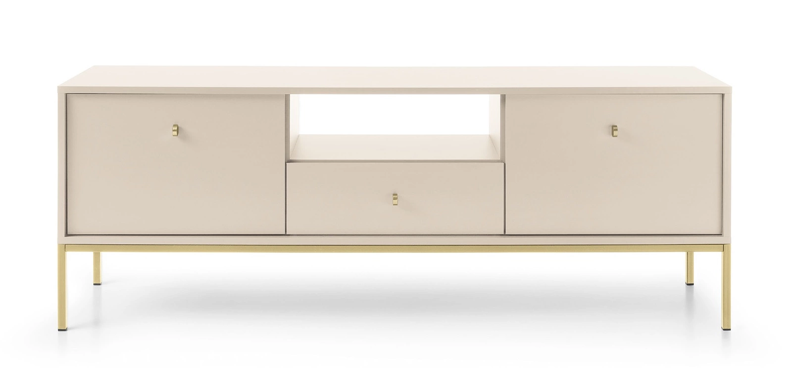 Das Möbelset Mono in Beige ist ein außergewöhnliches Angebot für das Wohnzimmer oder das Wohnzimmer, das mit seiner minimalistischen Form und subtilen Eleganz begeistert. Die helle, warme Farbgestaltung erhellt den Raum und schafft eine gemütliche und harmonische Atmosphäre, die perfekt zum Entspannen geeignet ist. Die schlanken, goldenen Füße und stilvollen Griffe verleihen dem Set einen modernen Charakter mit einem Hauch von Luxus. Die Möbel aus der Mono-Kollektion passen sowohl in kleine als auch in geräumige Räume und bringen visuelle Ordnung und Leichtigkeit in den Raum.