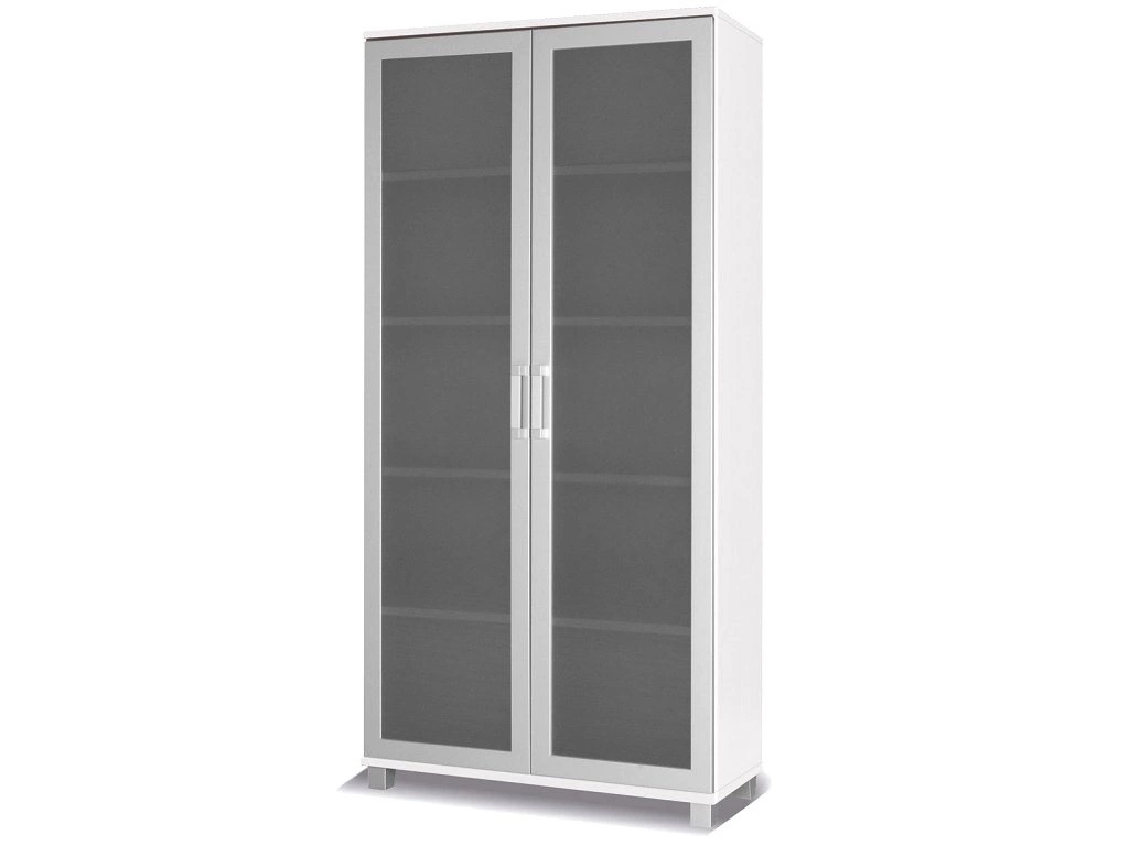 Breiter Schrank Maximus 100 cm Weiß modernes Design Einfassung mit speziellen Furnierelementen aus sicherem gehärtetem Glas beendet