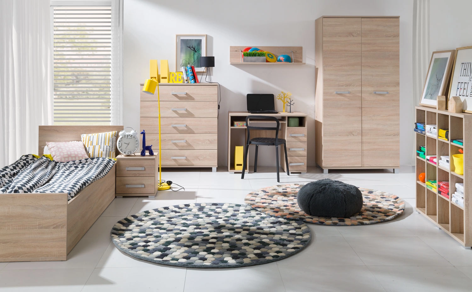 Die Kommode Maximus 138 cm mit Schubladen in heller Sonoma-Eiche ist ein Rezept für eine moderne und funktionelle Einrichtung im Schlafzimmer, Kinderzimmer oder Büro.