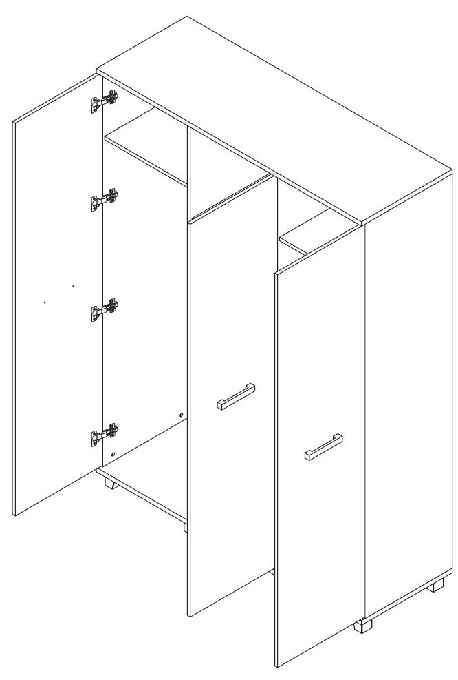Das Gehäuse besteht aus 3 flügeltüren über das Ziel matt. Der Kleiderschrank Maximus ist unterteilt in teil mit Stangen i teil mit Regalen. Die Kommode ist mit 2 Flügeltüren und 4 offenen Fächern ausgestattet. Schubladen in Nachttischen und Schminktisch auf Rollenführung ausziehbar.