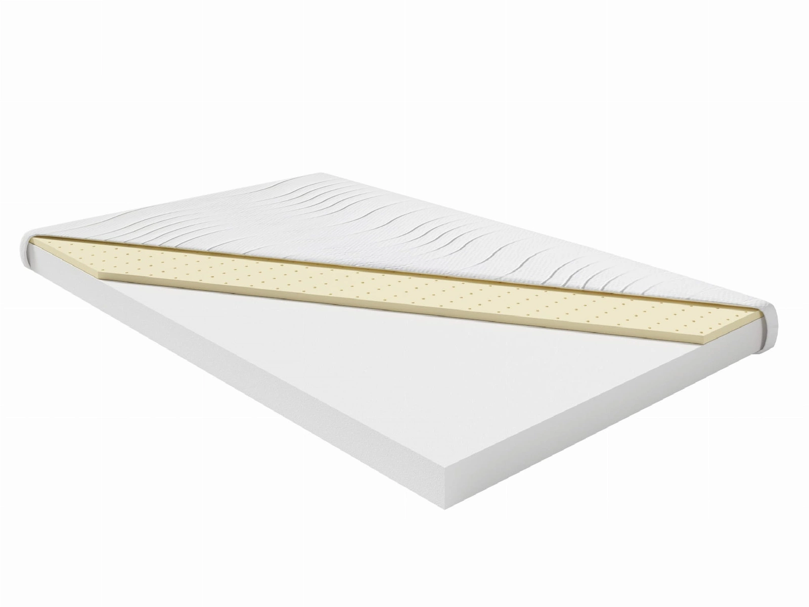 Eine Seite der Matratze ist mit Latexschaum umhüllt, einer Mischung aus synthetischem Latex und natürlicher Gummibaummilch. Latex zeichnet sich durch hohe Haltbarkeit und Punktelastizität aus. Passt sich perfekt an die Körperform an und garantiert einen hohen Schlafkomfort. Dank eines Systems von Löchern wird das Innere der Matratze kontinuierlich belüftet.