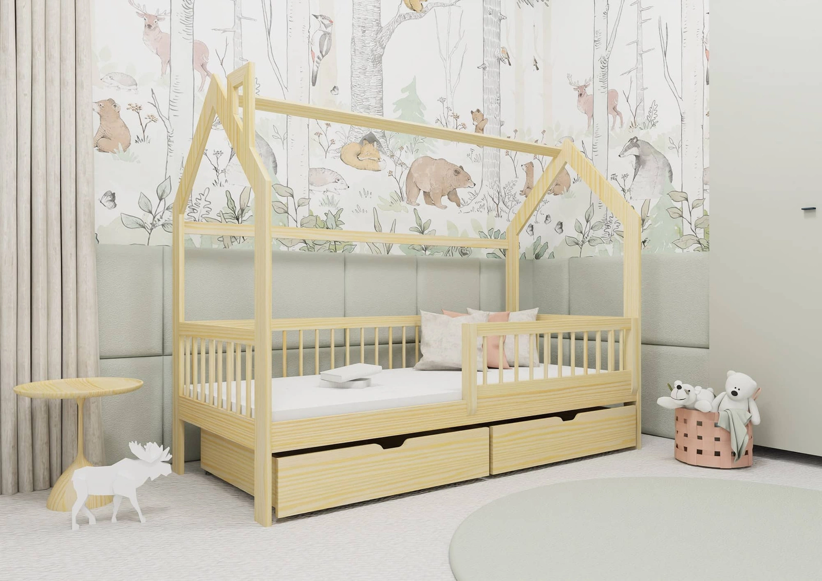Holzbett Pumba 80x170 cm Kiefer Kinderbett aus massivem Kiefernholz Kinderhausbett mit geräumigen Schubladen