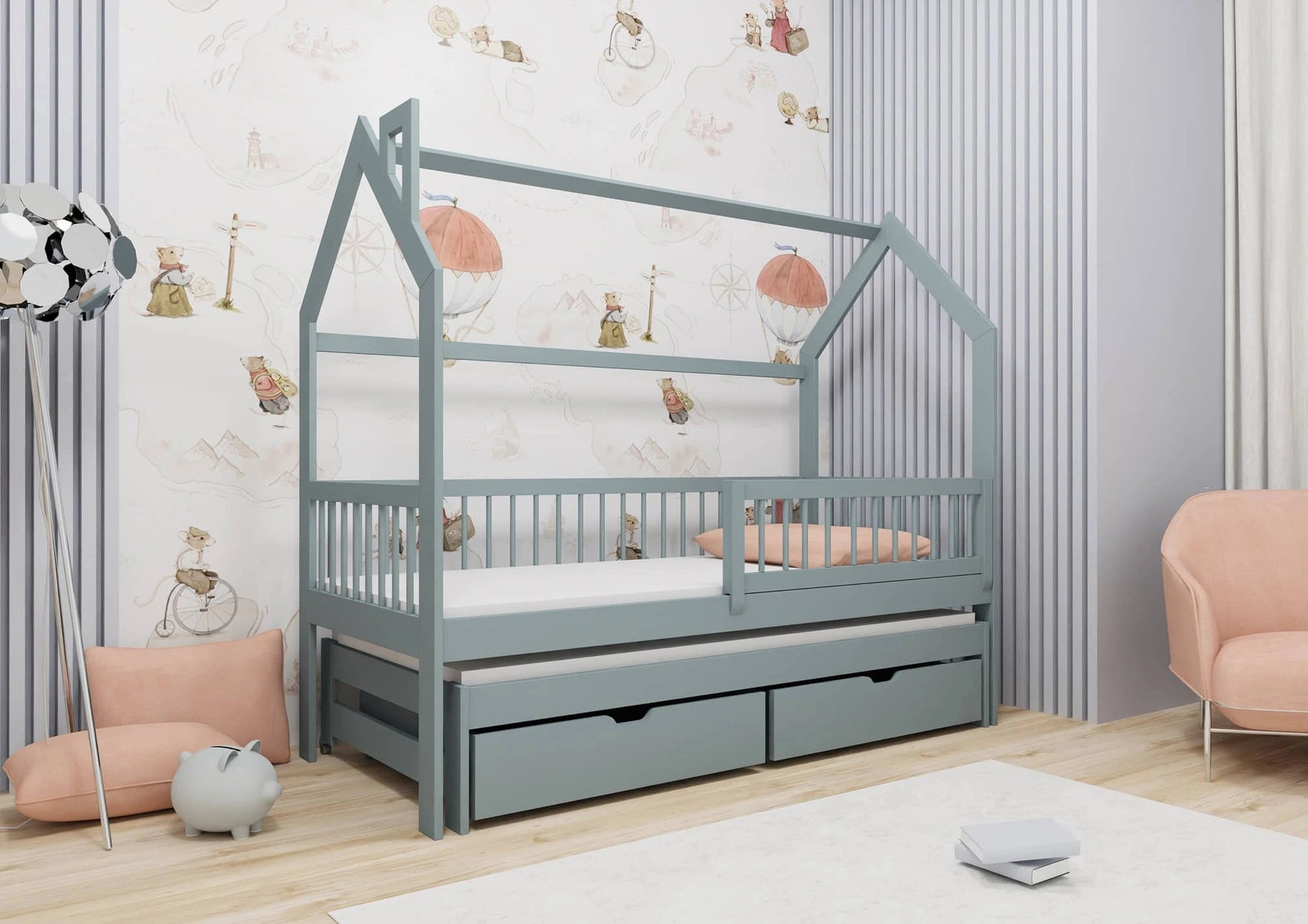 Dyzio Haus Kinderbett 80x200 cm in grau passt perfekt in jedes Kinderzimmer.