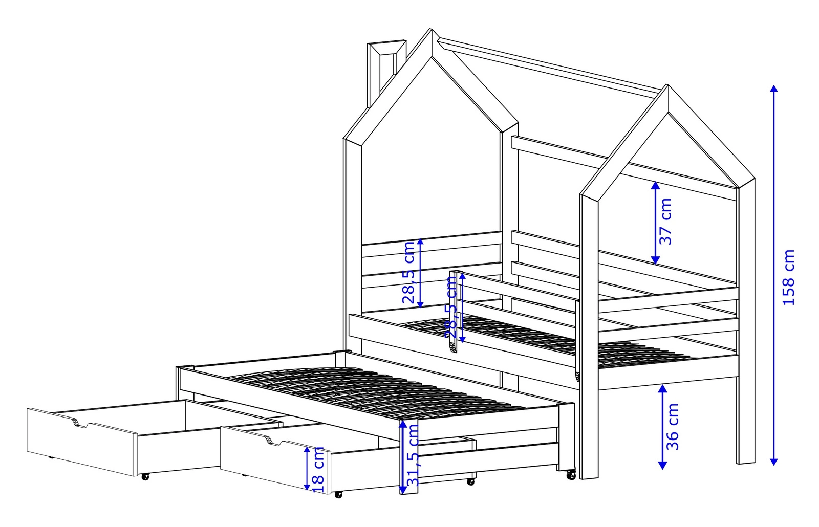 Haus Etagenbetten ist die perfekte Wahl für ein Kinderzimmer. Solivendesign das Bett bietet Komfort und Sicherheit beim Schlafen und Spielen. Chip Kinderbetten sind aus massivem Kiefernholz gemalt grau, die sich durch einen großen robust und widerstandsfähig gegenüber externen Faktoren. Ausziehbares Bett ist mit zwei Rollen ausgestattet, die das Herausziehen erleichtern. Bewährtes Befestigungssystem mit Holzdübeln und Konfirmationsschrauben sorgt für hohe Stabilität der gesamten Konstruktion.