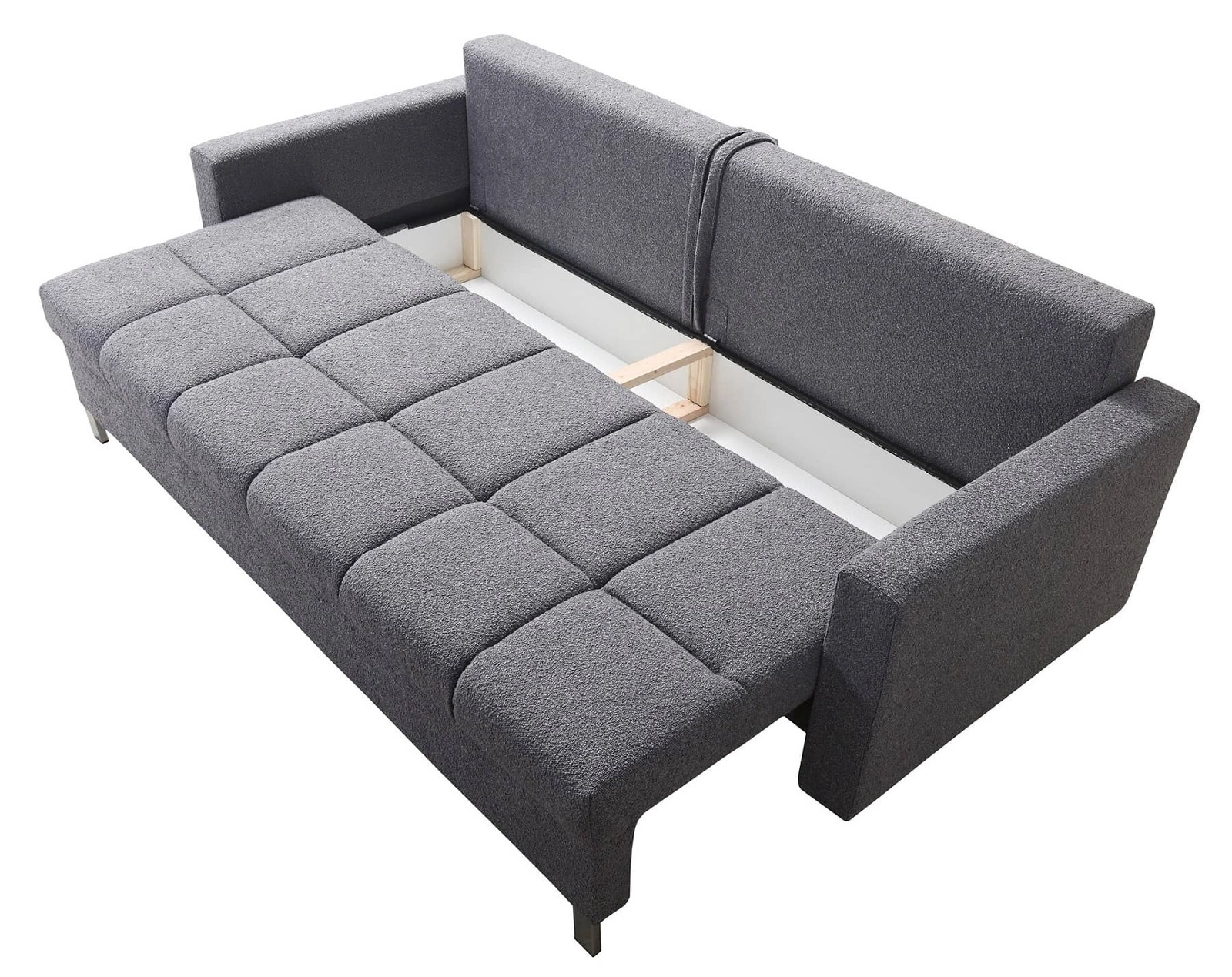 Weitere Merkmale dieses Möbels, die von allen Nutzern geschätzt werden, sind ein Bettzeugbehälter und eine Schlaffunktion.