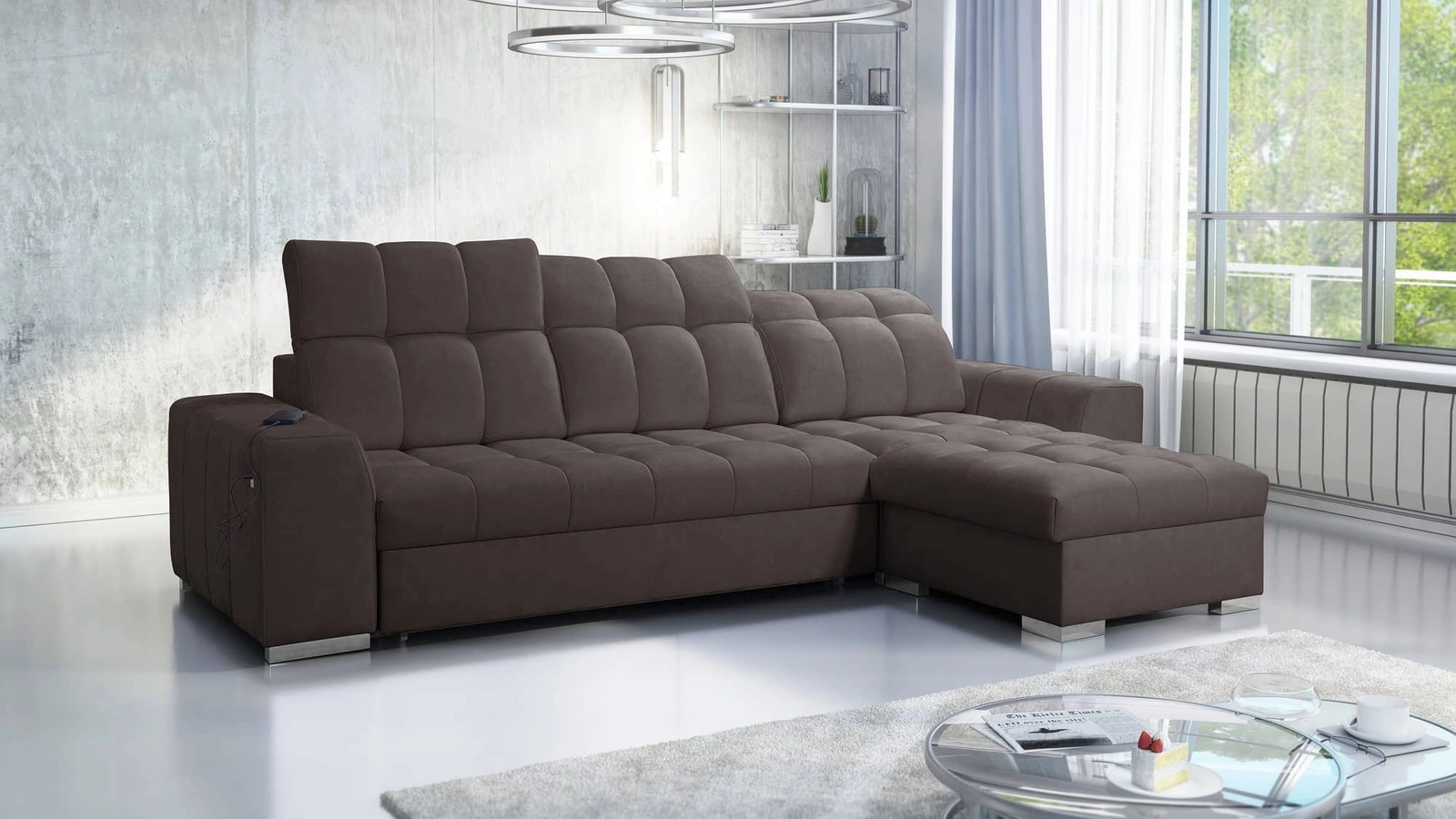 Die Extras dieses Möbels, die alle Nutzer zu schätzen wissen, sind die zwei Bettkästen, die Schlaffunktion und die USB-Ladebuchse an der Seite des Eckmöbels.