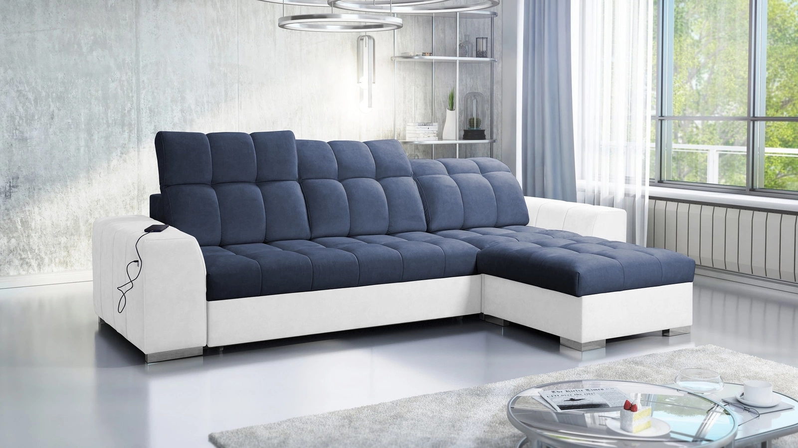 Die Extras dieses Möbels, die alle Nutzer zu schätzen wissen, sind die zwei Bettkästen, die Schlaffunktion und die USB-Ladebuchse an der Seite des Eckmöbels.