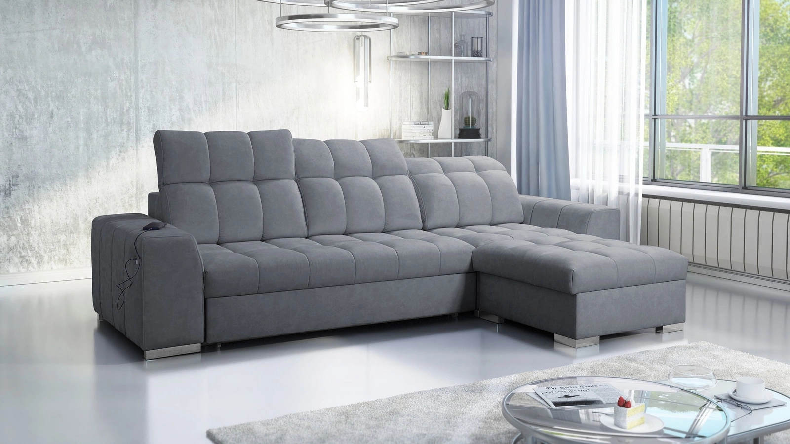 Die Extras dieses Möbels, die alle Nutzer zu schätzen wissen, sind die zwei Bettkästen, die Schlaffunktion und die USB-Ladebuchse an der Seite des Eckmöbels.