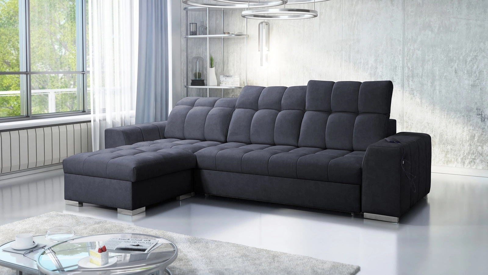 Die Extras dieses Möbels, die alle Nutzer zu schätzen wissen, sind die zwei Bettkästen, die Schlaffunktion und die USB-Ladebuchse an der Seite des Eckmöbels.