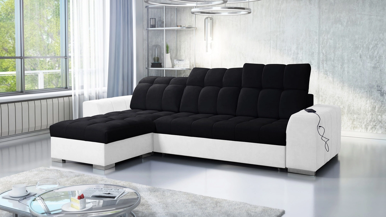 Ecksofa Luigi in Schwarz/Weiß mit verstellbaren Kopfstützen ist ein reizvolles Möbelstück mit Garantie für höchsten Komfort und Funktionalität!