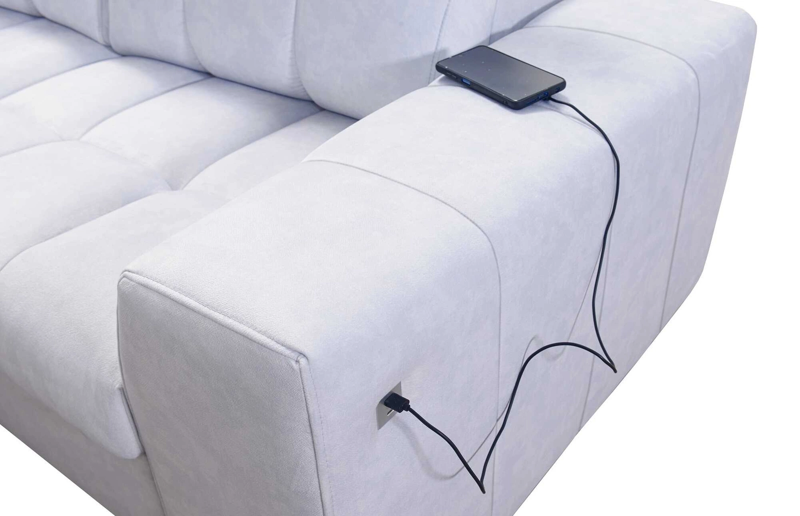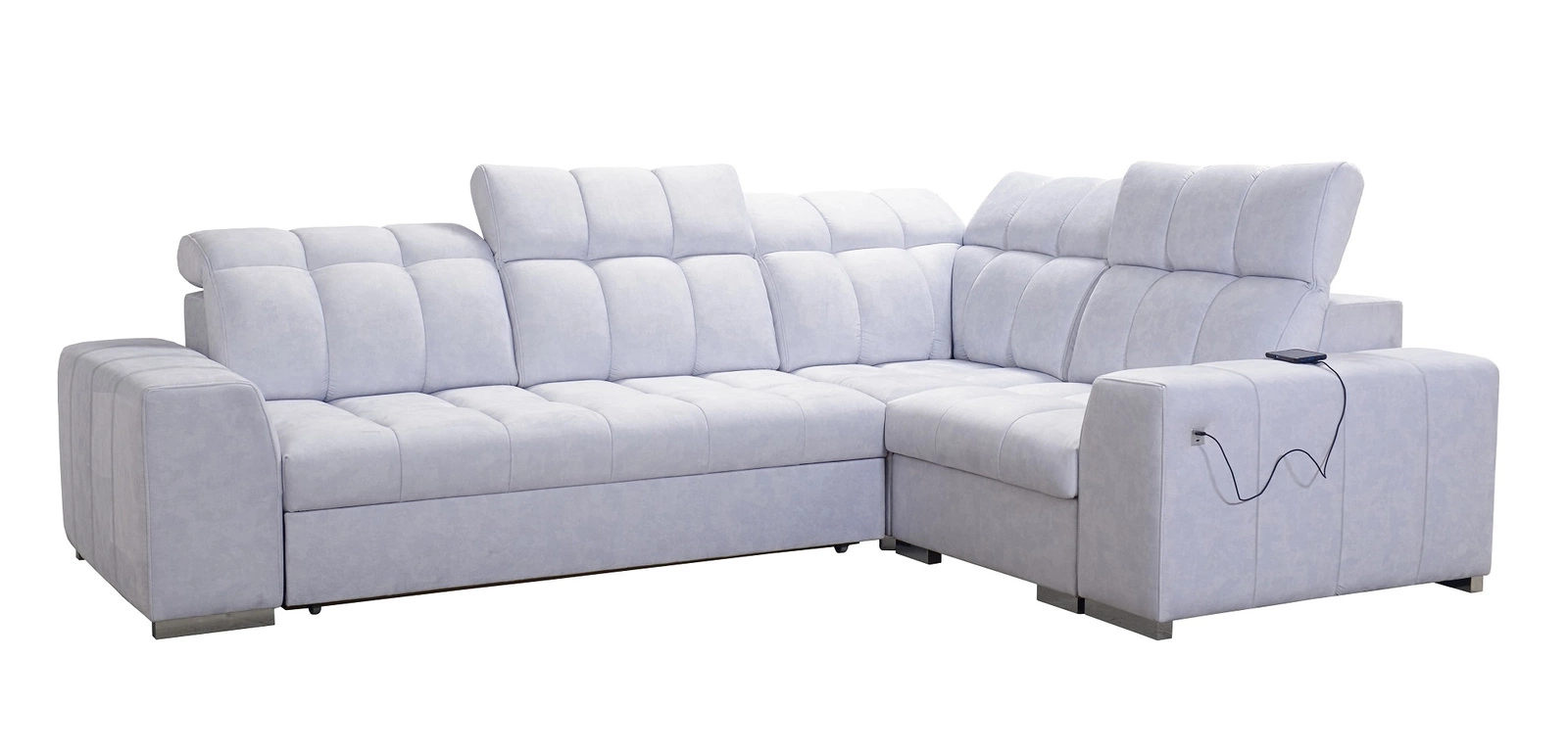 Die Extras dieses Möbels, die alle Nutzer schätzen werden, sind der Bettzeugbehälter, die Schlaffunktion und die USB-Ladebuchse an der Seite des Eckmöbels.