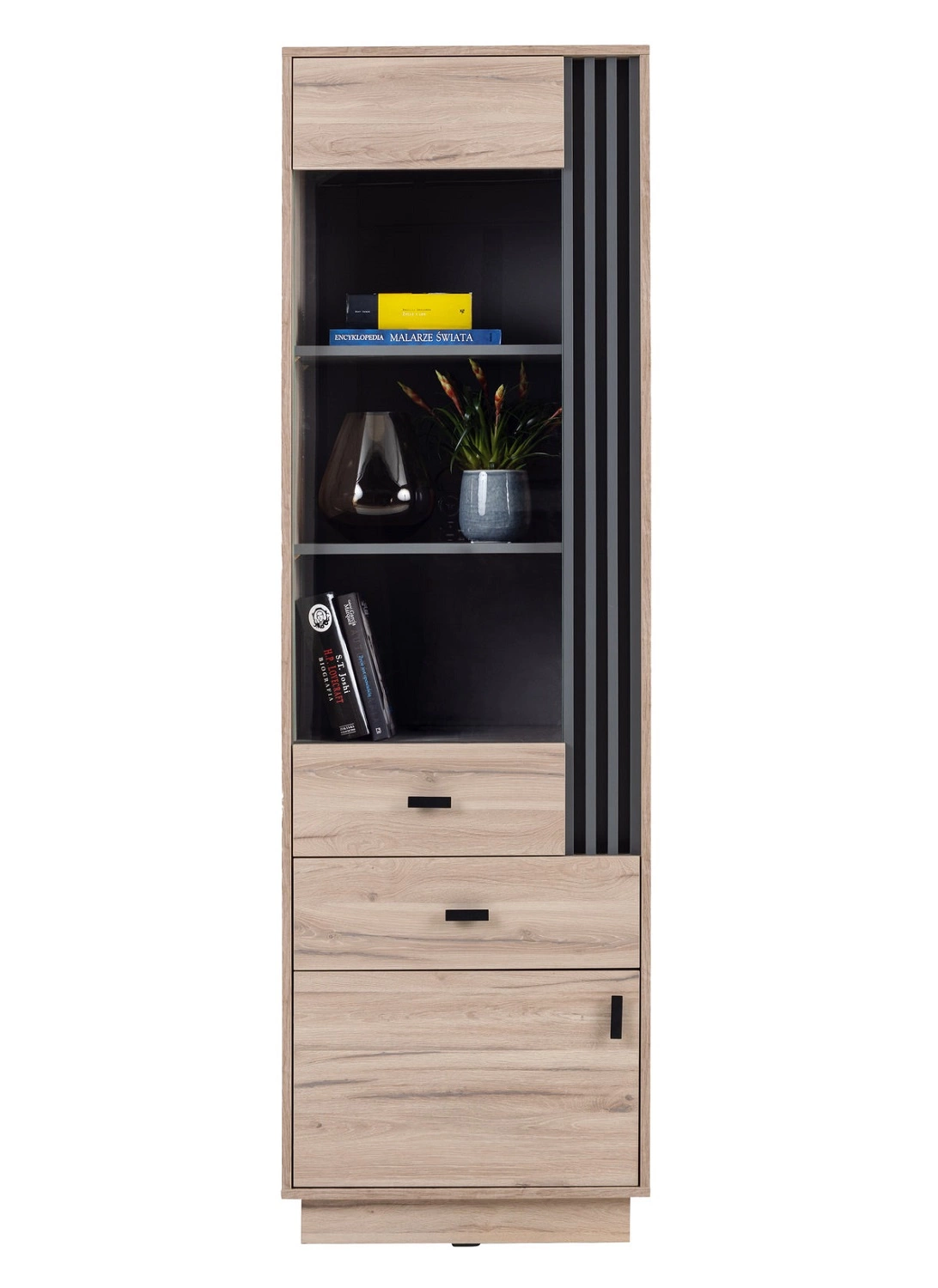 Das Estan-Möbelset ist die ideale Wahl für Liebhaber moderner Einrichtungen mit elegantem Charakter, für die eine breite Palette von funktionalität möbel. Fronten in eiche estana hell werden durch anthrazitfarbene Einsätze aufgelockert anthrazit. Eine stilvolle Ergänzung zu den Fronten sind metallgriffe in Schwarz, die zusätzlich zu ihrer Hauptfunktion den Möbeln einen einzigartigen Stil verleihen. Schubladen in Bücherregalen, Kommoden und RTV-Schrankauszügen auf kugelgelagerten Schienen.