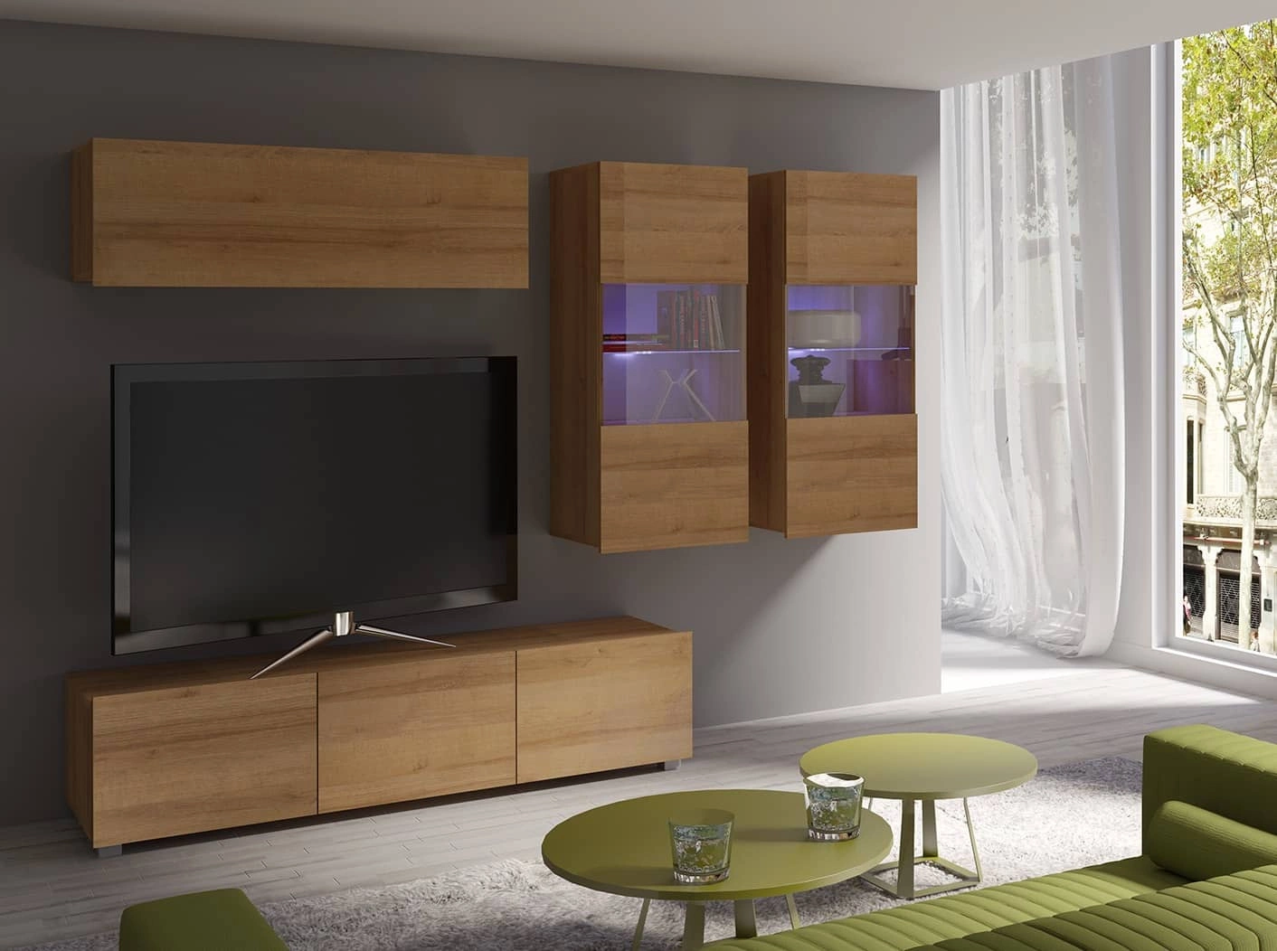 - Die Wohnwand Apulia ist ein modernes Design-Möbelstück, das Ihr Wohnzimmer stilvoll abrundet und ihm einen besonderen Charakter verleiht. Die warme Eichenholzfarbe schafft eine gemütliche und einzigartige Atmosphäre. Schlichte Form kombiniert mit zeitlose