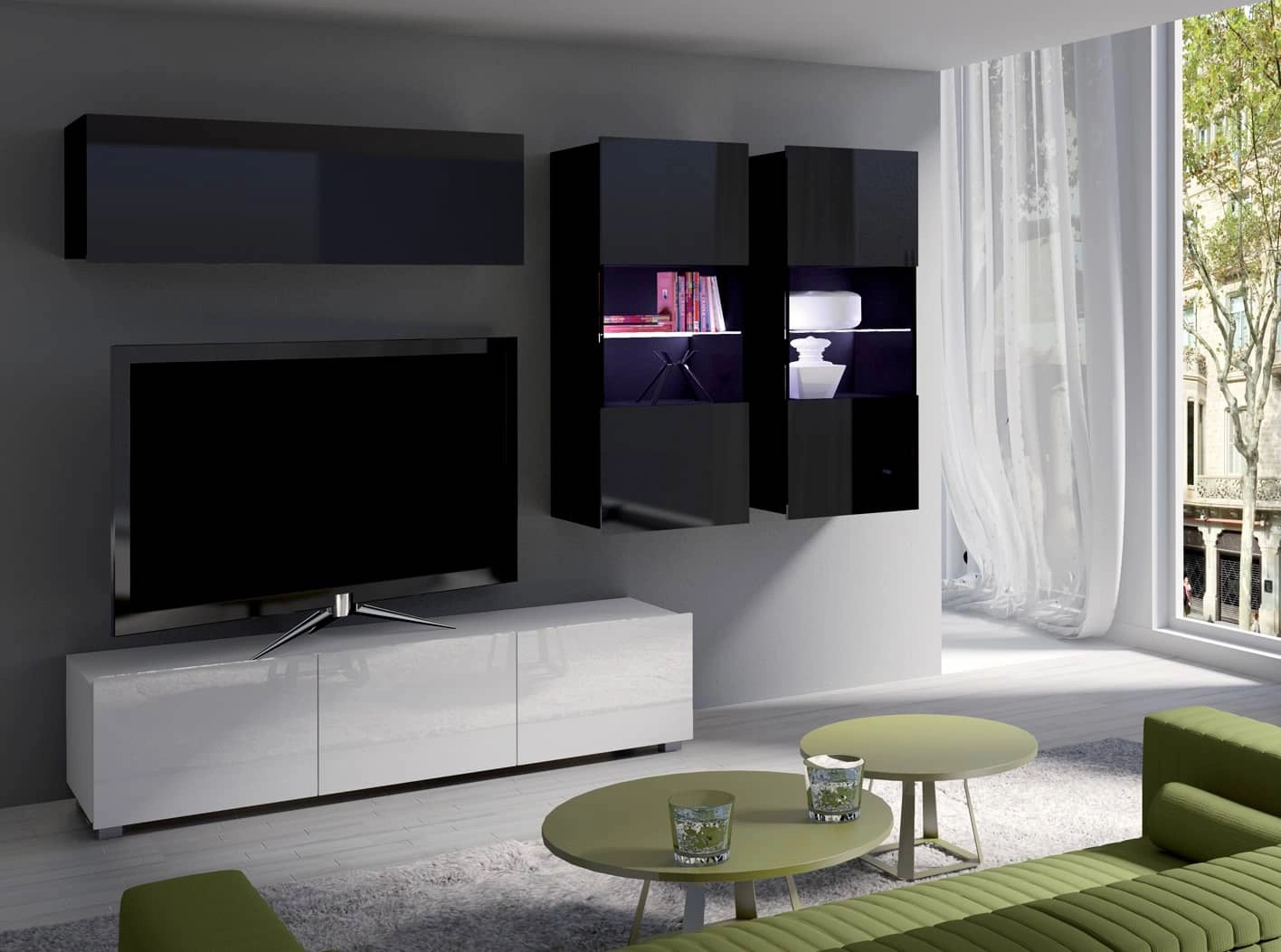 Die Schrankwand ist aus laminierter Platte von hoher Qualität, die resistent gegen äußere Einflüsse wie Druckstellen, Stöße und unglückliche Kratzer ist. Apulien Möbel Garantien störungsfreie Nutzung und Langlebigkeit der gesamten Schrankwand für viele Jahre der Nutzung. Die ikonische Kombination von Weiß und Schwarz großartig mischt sich mit anderen Farben, was die Apulia-Möbel zu einem großartigen siehe kann als Schrankwand für das Wohnzimmer oder als Schrankwand für das Wohnzimmer verwendet werden.