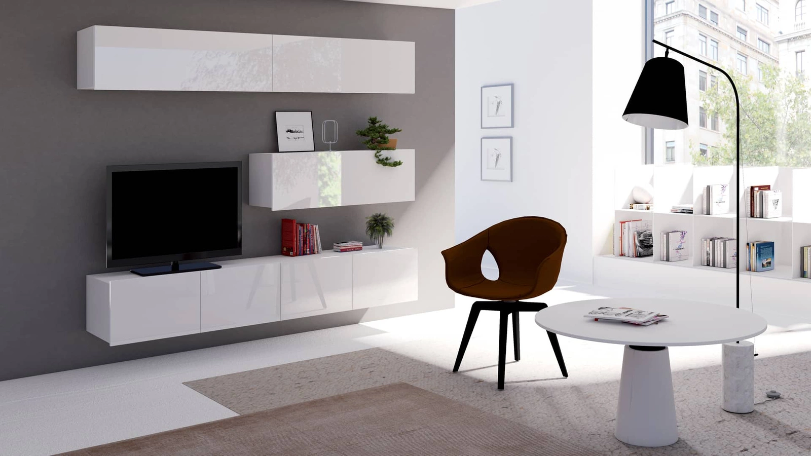 Hängeelement Apulia VIII weiß glänzend Ein außergewöhnlich stilvolles Hängeelement mit schlichten Möbelstücken, das sich in jede Einrichtung einfügt