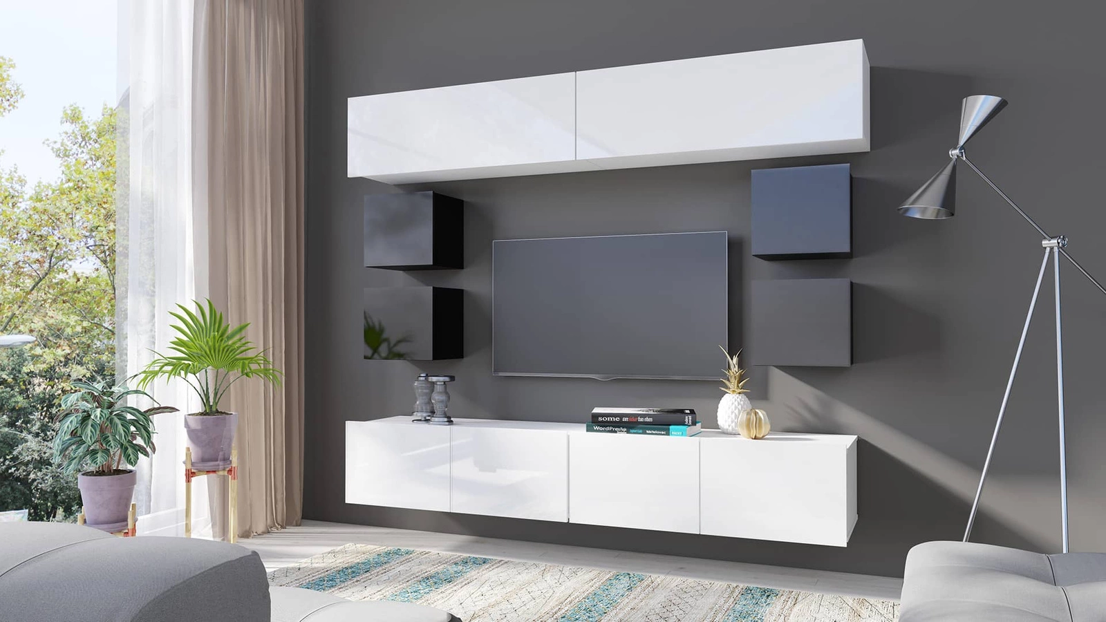 Hängeelement Apulia XVI weiß glänzend/schwarz glänzend Außergewöhnlich stilvolles Hängeelement mit schlichten Möbelstücken, die sich in jede Einrichtung einfügen