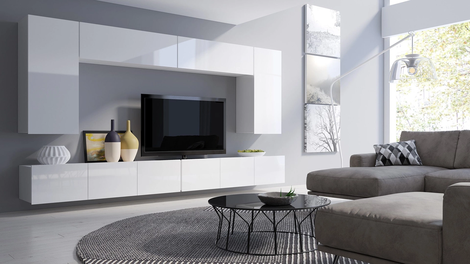 Die Apulia Schrankwand in Weiß ist ein modernes Möbelstück, das Ihre Einrichtung stilvoll abrundet.