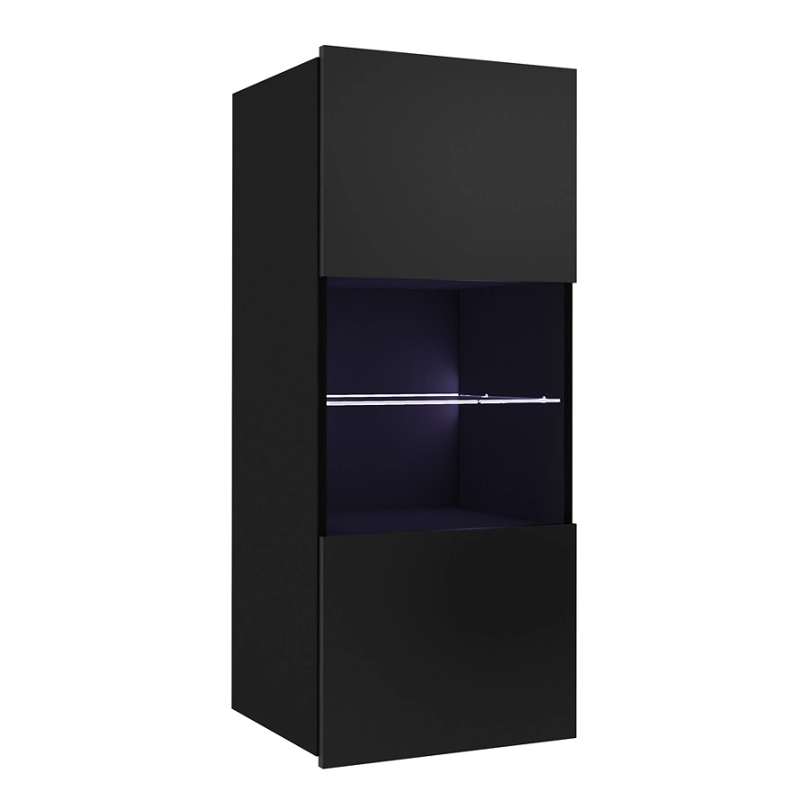 Verglaste Schaufensterfront ermöglicht es Ihnen, Ihre Wohnaccessoires zur Schau zu stellen. Geräumige RTV-Schränke kann sämtliches Zubehör und Ausrüstung aufnehmen. Subtelins überhängende Fronten auch als Griff dienen. Zusätzliche vorteil von des RTV-Schrankes ist die Möglichkeit, die Positionierung des Schrankes zu wählen. RTV-Schrank kann auf dem Boden stehen. Dank der mitgelieferten Aufhänger kann der RTV-Schrank schnell zu einem Hängeschrank werden kann eine Schrankwand werden.