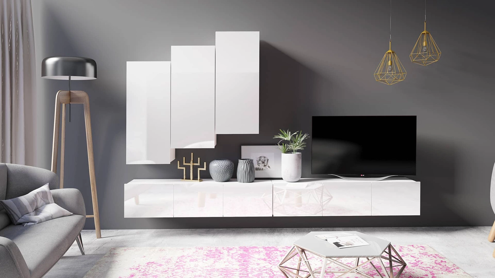 Die Apulia Schrankwand in Weiß ist ein modernes Möbelstück, das Ihre Einrichtung stilvoll abrundet.