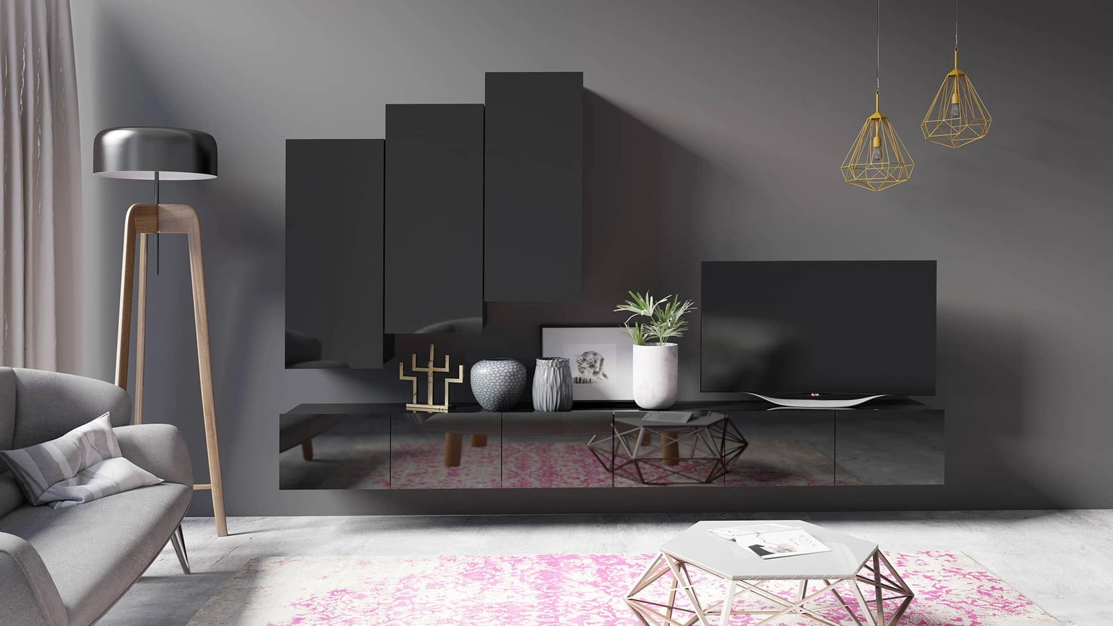 Die Apulia Schrankwand in Schwarz ist ein modernes Möbelstück, das Ihre Einrichtung stilvoll abrundet.