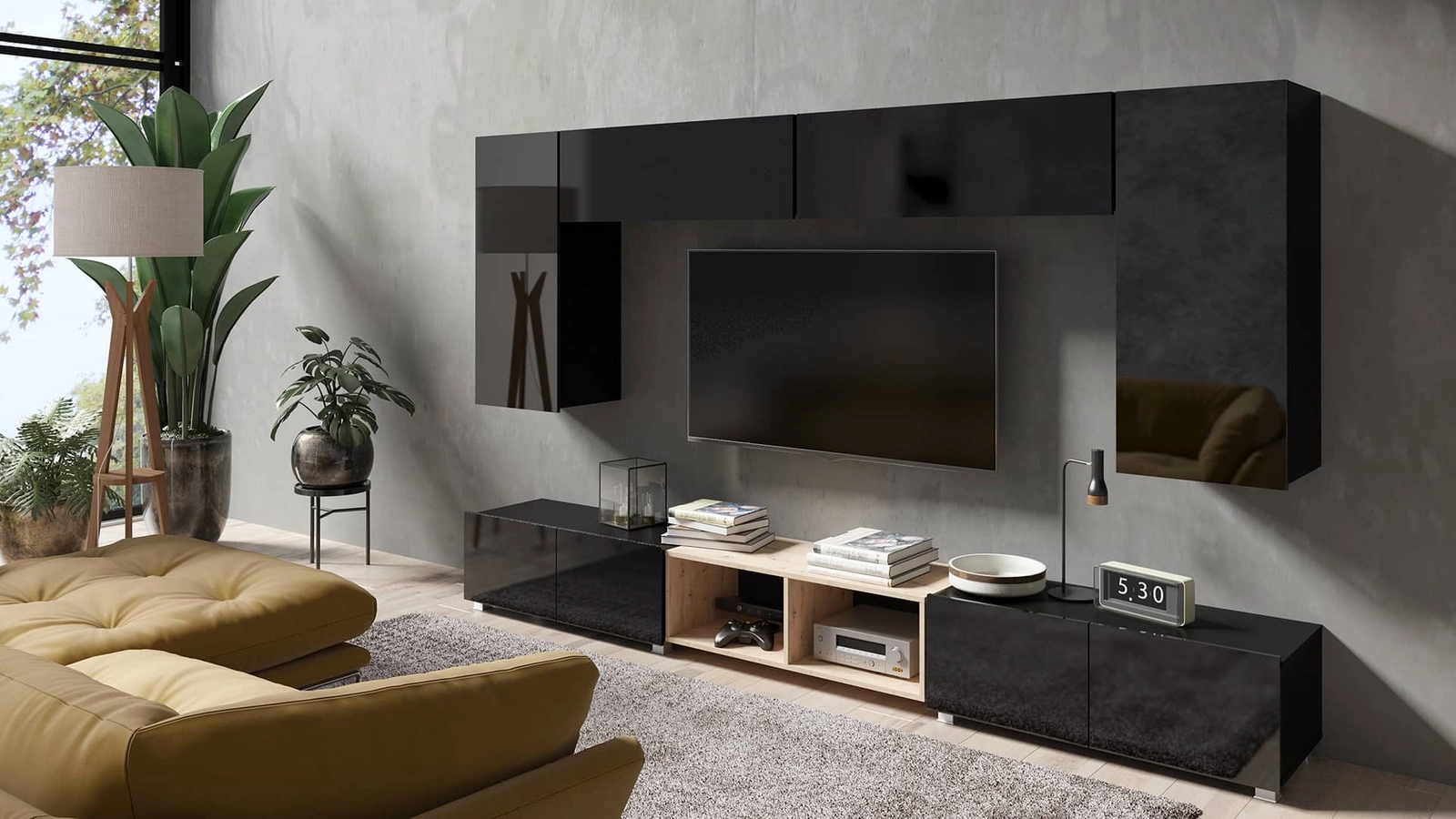 Die Apulia Schrankwand in Schwarz ist ein modernes Möbelstück, das Ihre Einrichtung stilvoll abrundet.
