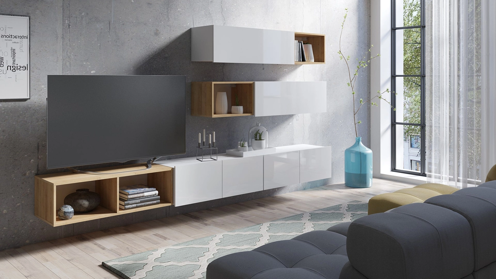 Möbel Apulia XXV weiß glänzend / goldene Eiche ein außergewöhnlich stilvolles Wandelement einfache Elemente, die in jedes Interieur passen
